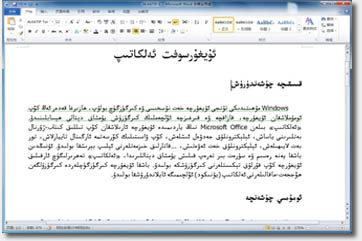 我们强烈推荐使用Microsoft Windows 7 提供的维吾尔文字体和输入功能。若需要更多的维吾尔文,哈萨克文、柯尔克孜文字体和输入法、代码转换功能以及图像处理软件中使用维吾尔文,请安装使用《维软标准输入法》。