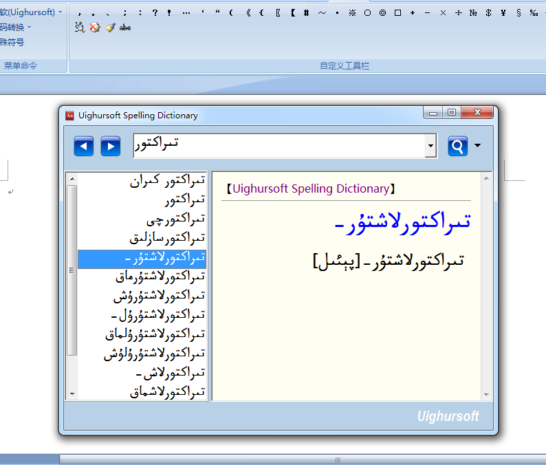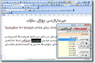 维吾尔文校对软件的研究工作是在Windows9X上维吾尔文的显示与输入问题解决后,从上世纪90年代末开始的。虽然这项任务的研究工作比英文,中文起步较晚,但我们在此领域上不断地努力探索,参照英文及阿拉伯文校对软件的经验,终于实现了比较成熟的维吾尔文校对软件。